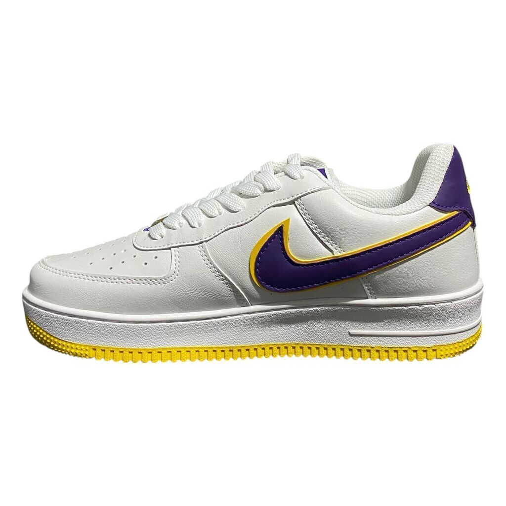 Tênis - Nike Air Force Premium Lakers Branco c/ Símbolo Roxo Solado Amarelo